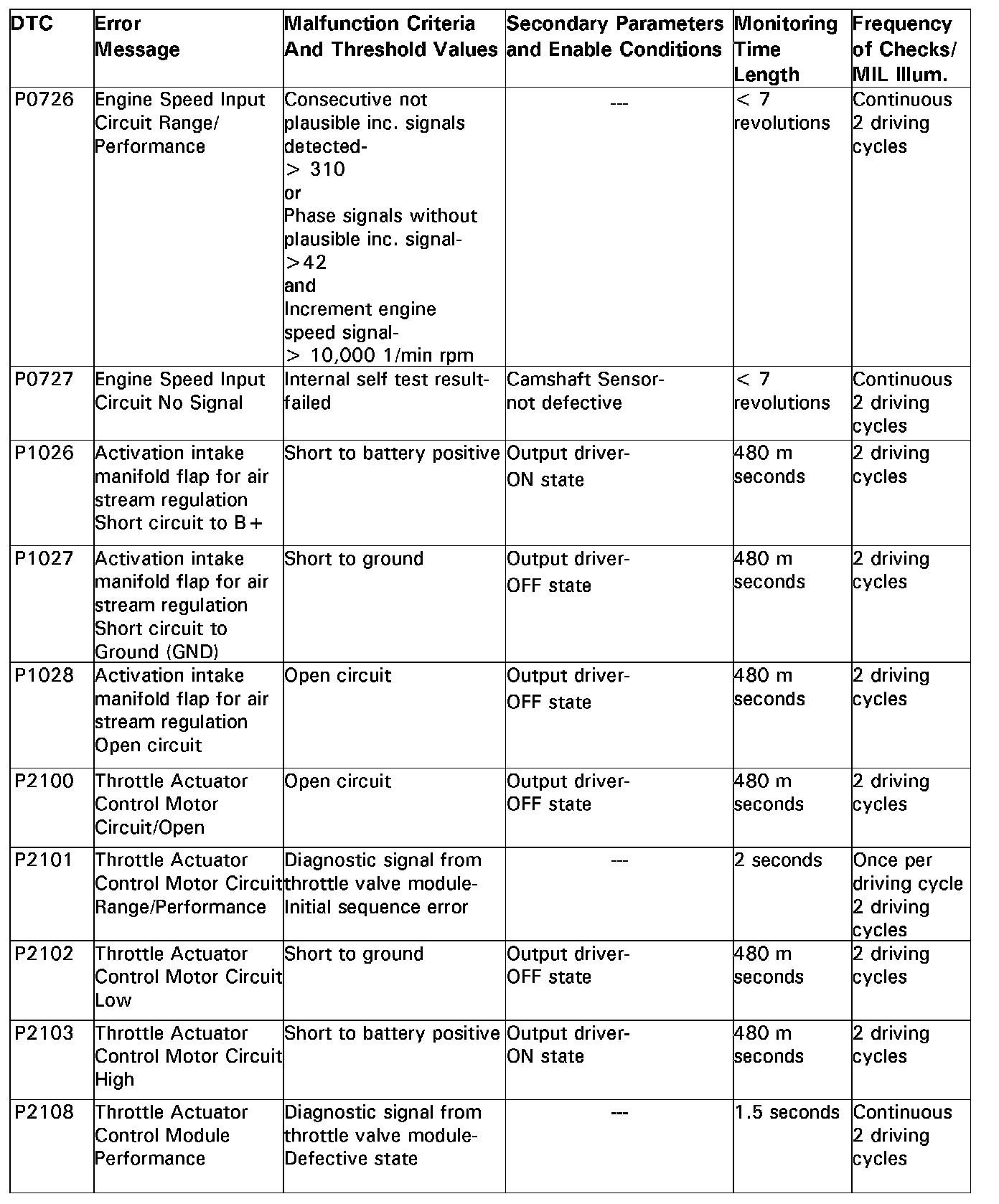 DTC P0726 - P2108: