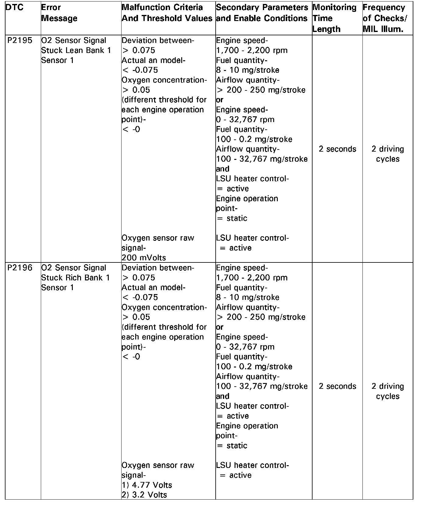 DTC P2195 - P2196: