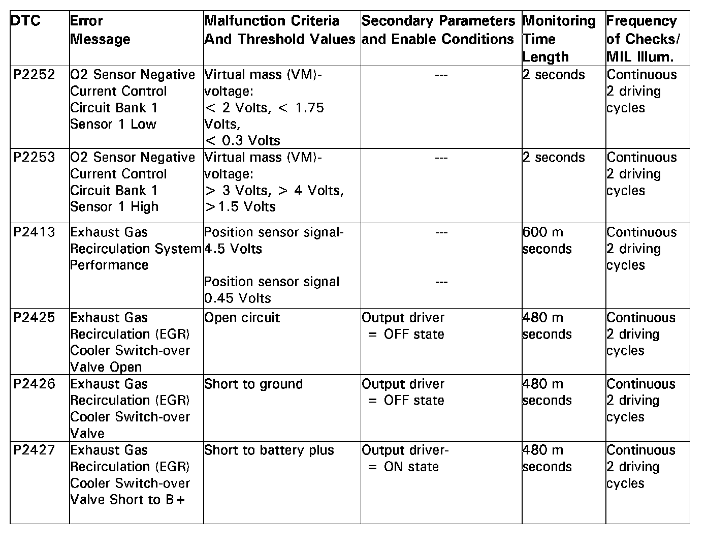 DTC P2252 - P2427: