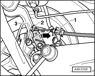 - Press the lever - 2 - in - direction of arrow - and unhook then parking brake cable - 3 -.