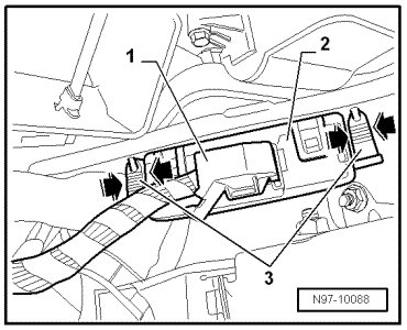 - Press the tabs - 3 - together - arrows - and pull them out of the holes.