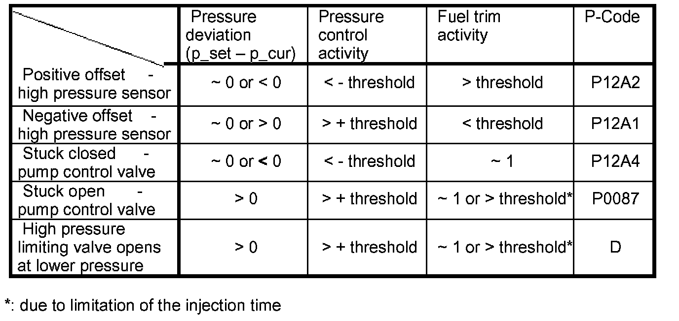 Incorrect pressure information can only be caused by positive or negative offset-faults of the high pressure sensor.
