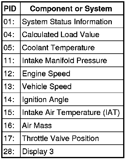Depending on scan tool and protocol used, the information displayed in diagnostic mode 01 may be referred to by different names such as Test-ID (TID), Hex-ID, Component-ID (CID), On-Board Diagnostic Monitor Identifier (OBDMID), or contain no name at all and be referenced by only a number.
