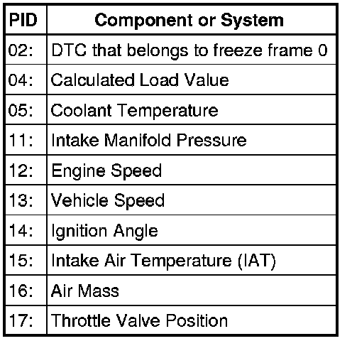 Depending on scan tool and protocol used, the information displayed in diagnostic mode 02 may be referred to by different names such as Test-ID (TID), Hex-ID, Component-ID (CID), On-Board Diagnostic Monitor Identifier (OBDMID), or contain no name at all and be referenced by only a number.