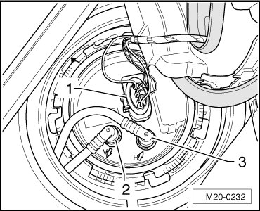 - Disconnect the connector - 1 -, the supply line - 2 - and the return line - 3 - from the fuel delivery unit.