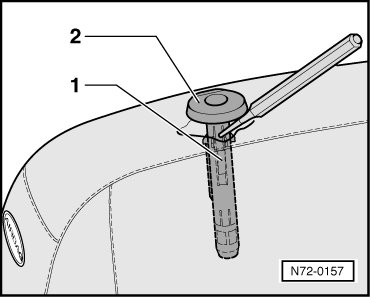 - Using a screwdriver or mandrel, release retaining tabs - 1 - and pull out headrest guide - 2 -.