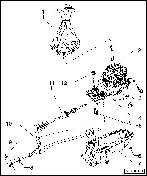 • Removing and installing, refer to => [ Selector Lever Cable, through 02.09 ] Service and Repair.