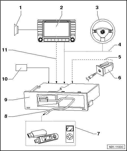• Multimedia system control module (J650) for the radio/radio-navigation system.
