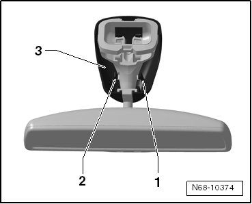 - Press the tabs - 1 - and - 2 - outward and remove the cap - 3 - from the mirror.