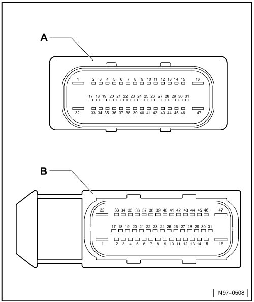 B - 47-Pin Connector, in wiring harness (T47)