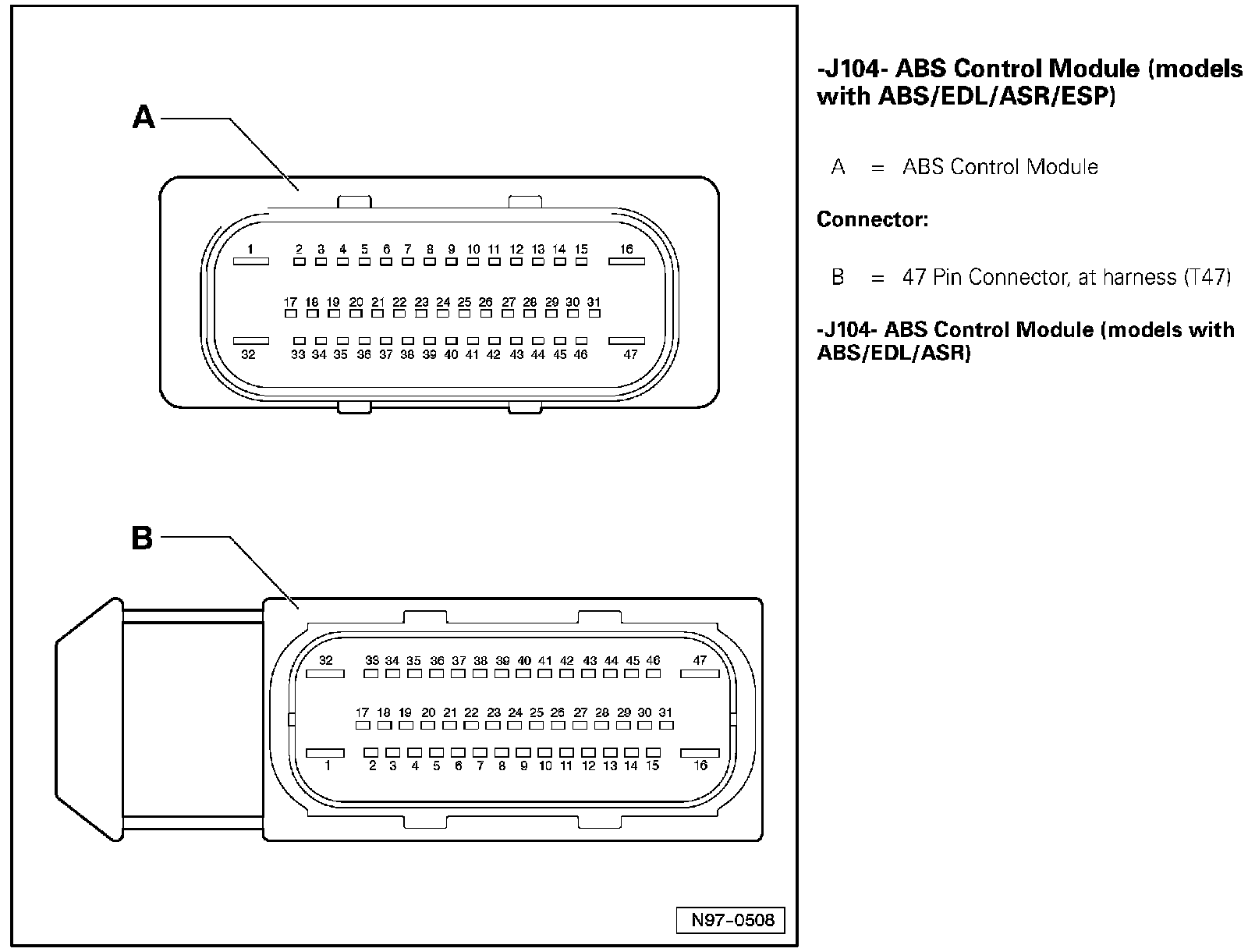 ABS Control Module (models With ABS/EDL/ASR/ESP) J104: