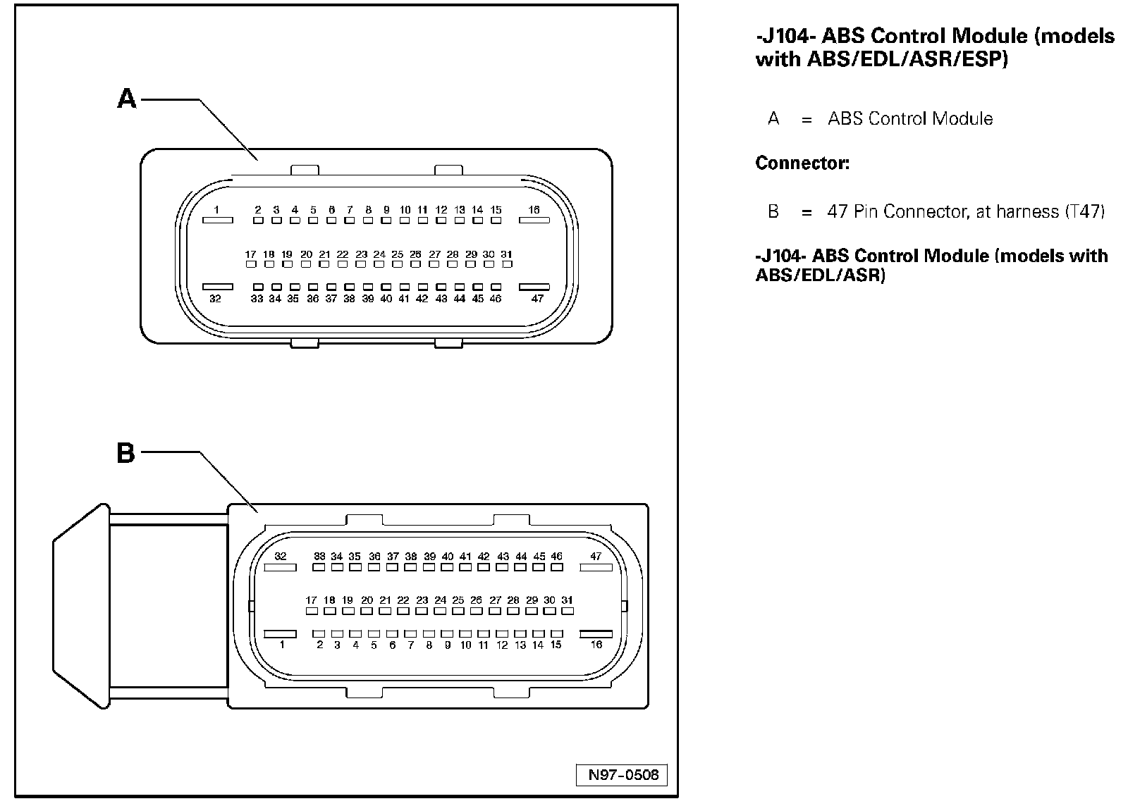 ABS Control Module (models With ABS/EDL/ASR/ESP) J104: