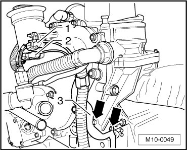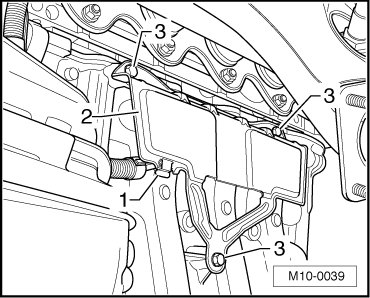 - Remove the clip - 1 - for wiring harness, remove the bolts - 3 - and remove the cover - 2 -.