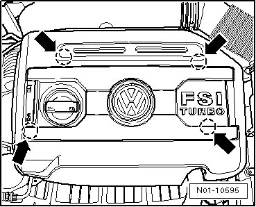 - Disengage engine cover at the retaining points - arrows - and remove engine cover upward.