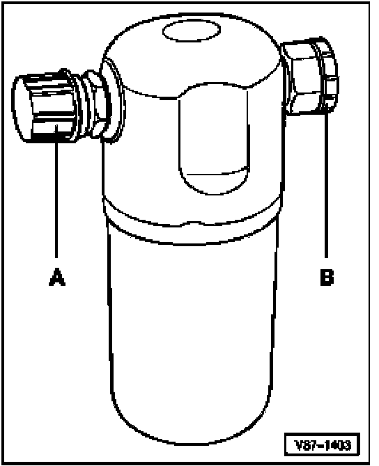 - Replace the reservoir if refrigerant circuit has been open for a long time (beyond the normal repair time) and moisture has penetrated inside, or if required due to a specific complaint.
