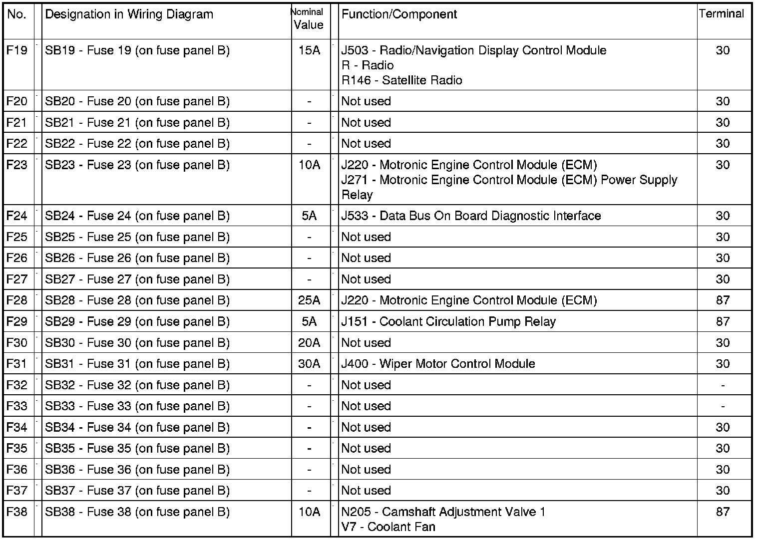 Fuses (SB) On Electronics Box High, from May 2005