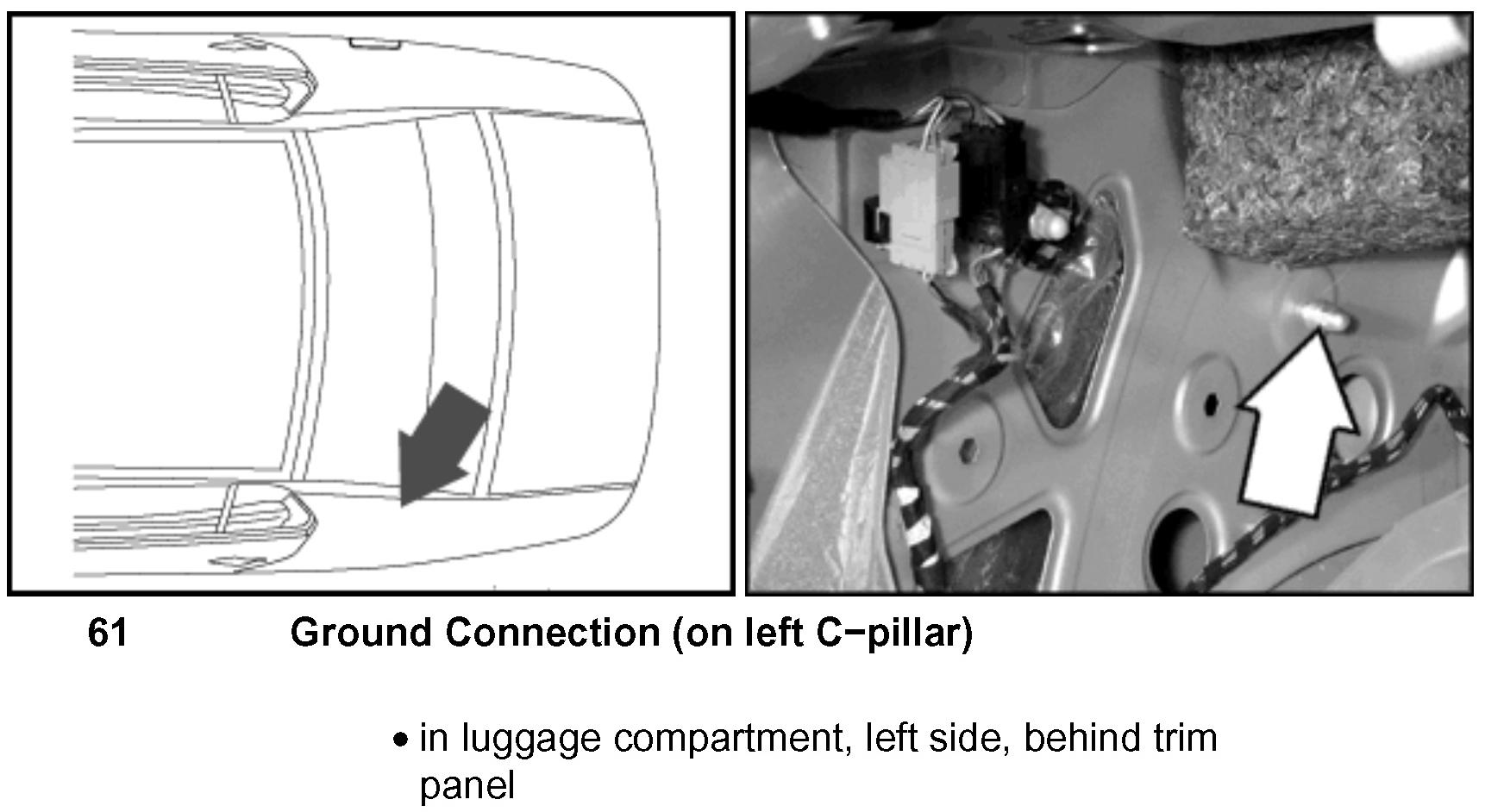 Ground Connection 61 (on Left C-Pillar)