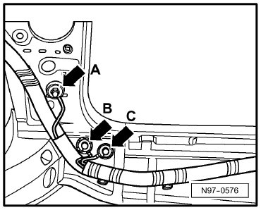 (602) - Ground Connection (in front left footwell) => -Arrow A-