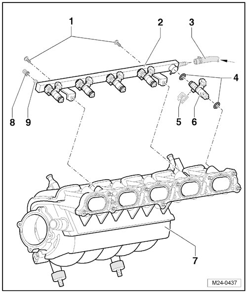 1 - Fuel injector => [ Fuel Rail and Injectors Assembly Overview ] See Image Below.