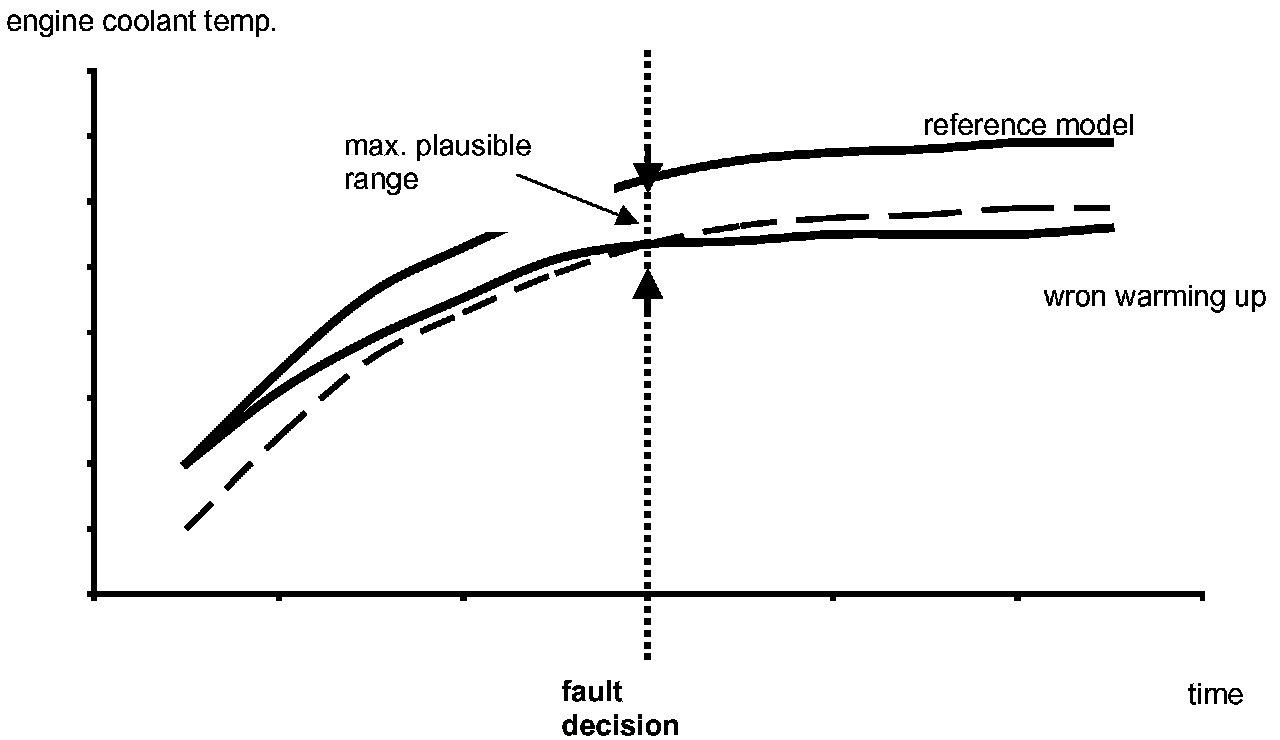In case that the engine coolant temperature does not fit to a reference model temperature in an certain range, the cooling system is defective or the sensor is not in a plausible range.