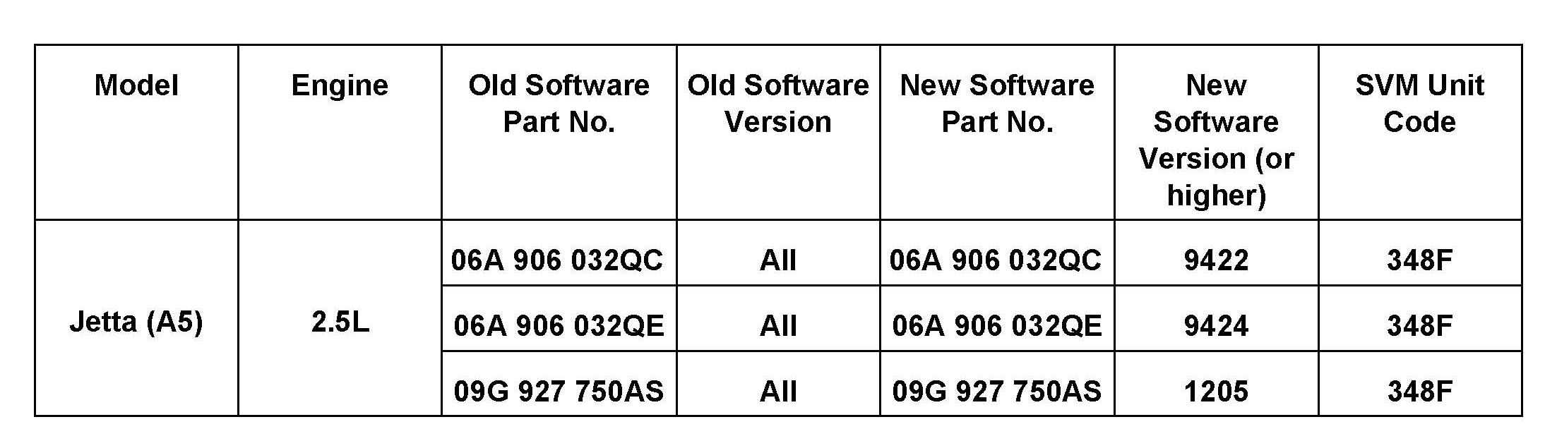 Update the Engine Control Module using the SVM Unit code as listed in the table shown.