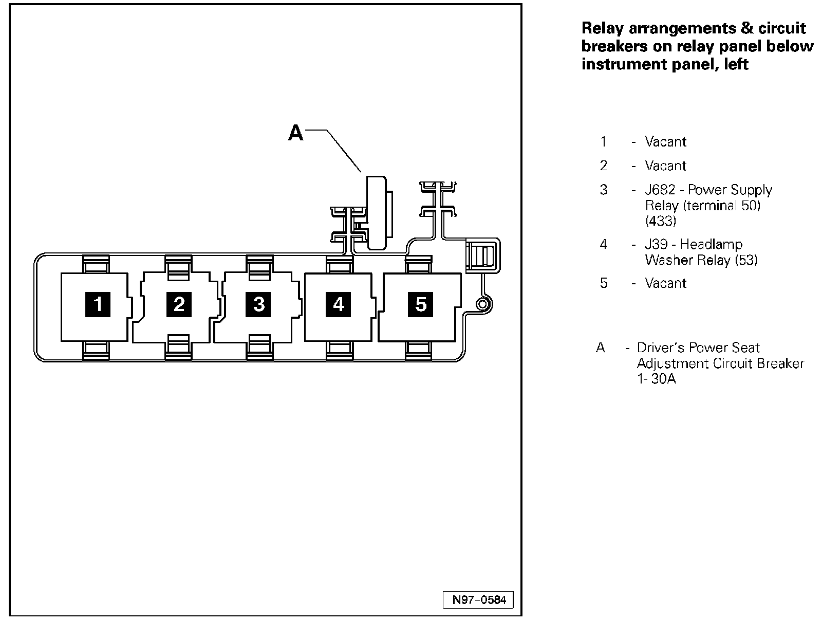 Relay Arrangements & Circuit Breakers On Relay Panel Below Instrument Panel, Left:
