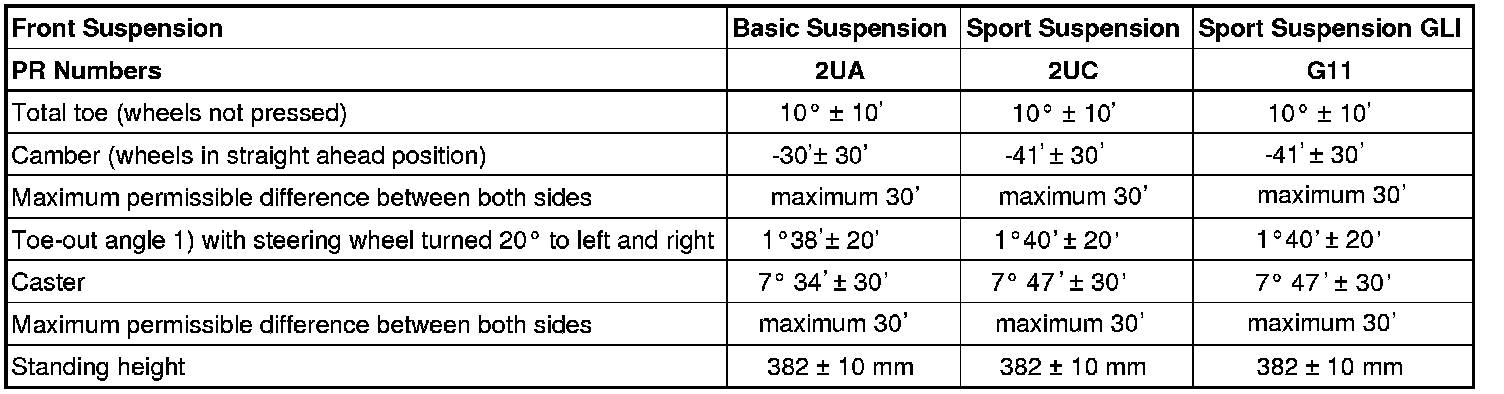 • The specifications apply to all engines in the Jetta from MY 2005 and Jetta SportWagen from MY 2009 (North America).