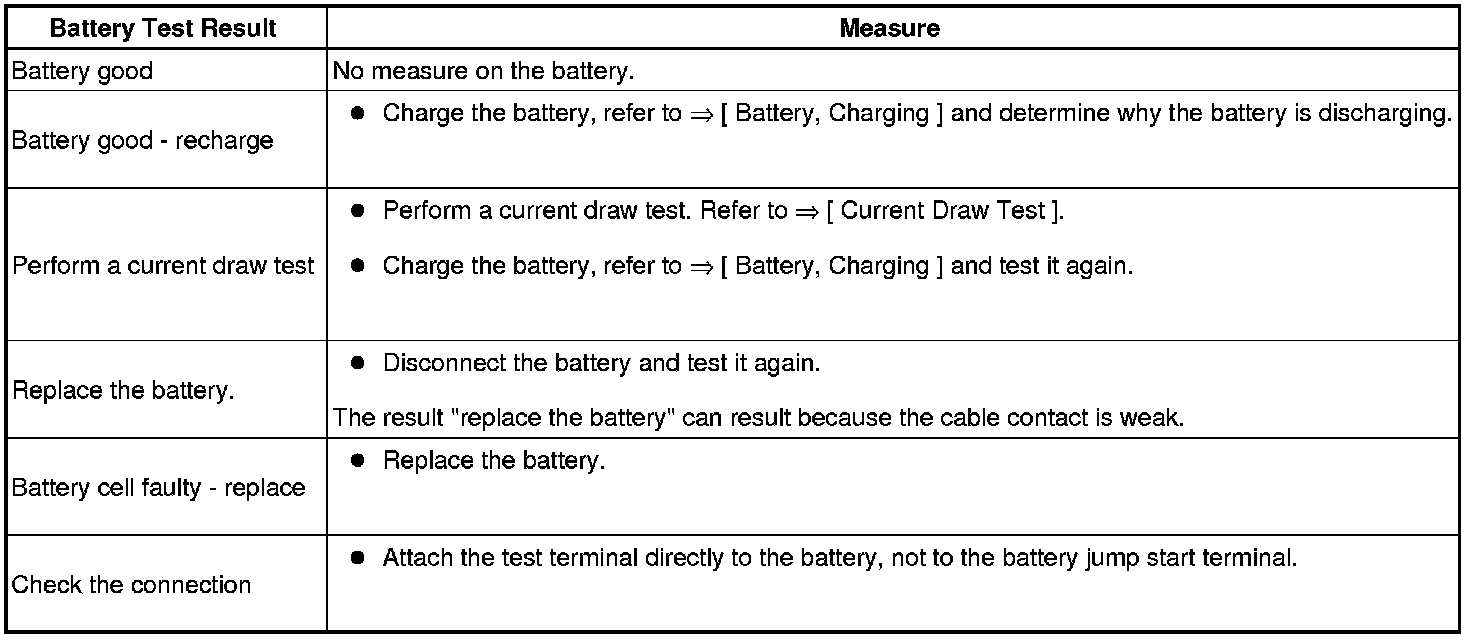 • Battery test, refer to => [ Battery Test ]. Battery Test