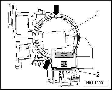 - Remove the ignition switch - 1 - from the steering lock housing.