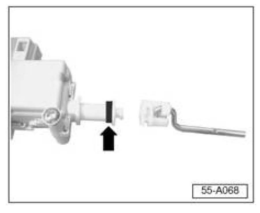 ^ Install release motor and check operation (see Repair Manual Body Exterior Group 55 - Hood, Lids, Fuel Tank Lid Unlock Motor -V155-, removing and installing).