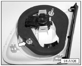 - Install tail lamp assemblies. See "Repair Manual", Electrical Equipment, Lights, Switches - exterior Rear lights , Rear lights in rear lid, removing and installing.