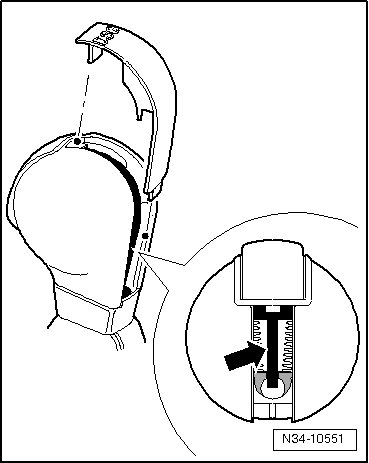 - Press the small lever for cable rod - arrow - into groove before handle is installed.