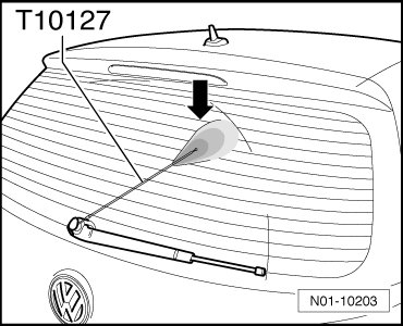- Adjust nozzle with adjustment tool (T10127) so that fluid sprays onto upper third of rear window, as shown.