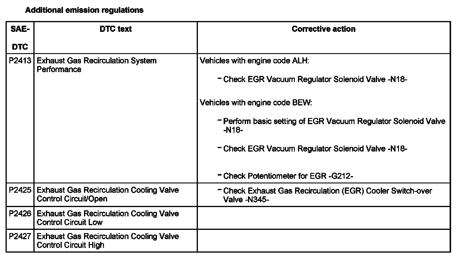 DTC P2413 - P2427: