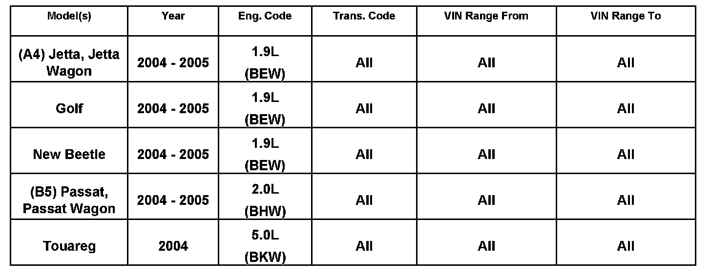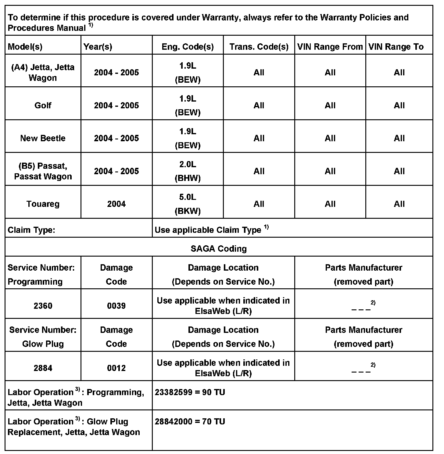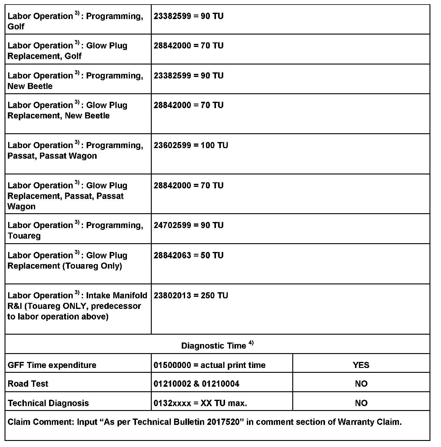 2017520 Supersedes T.B. Group 01 Number 08-28 dated Oct. 22, 2008 to provide GFF allowance and change Touareg labor operation number in warranty table.