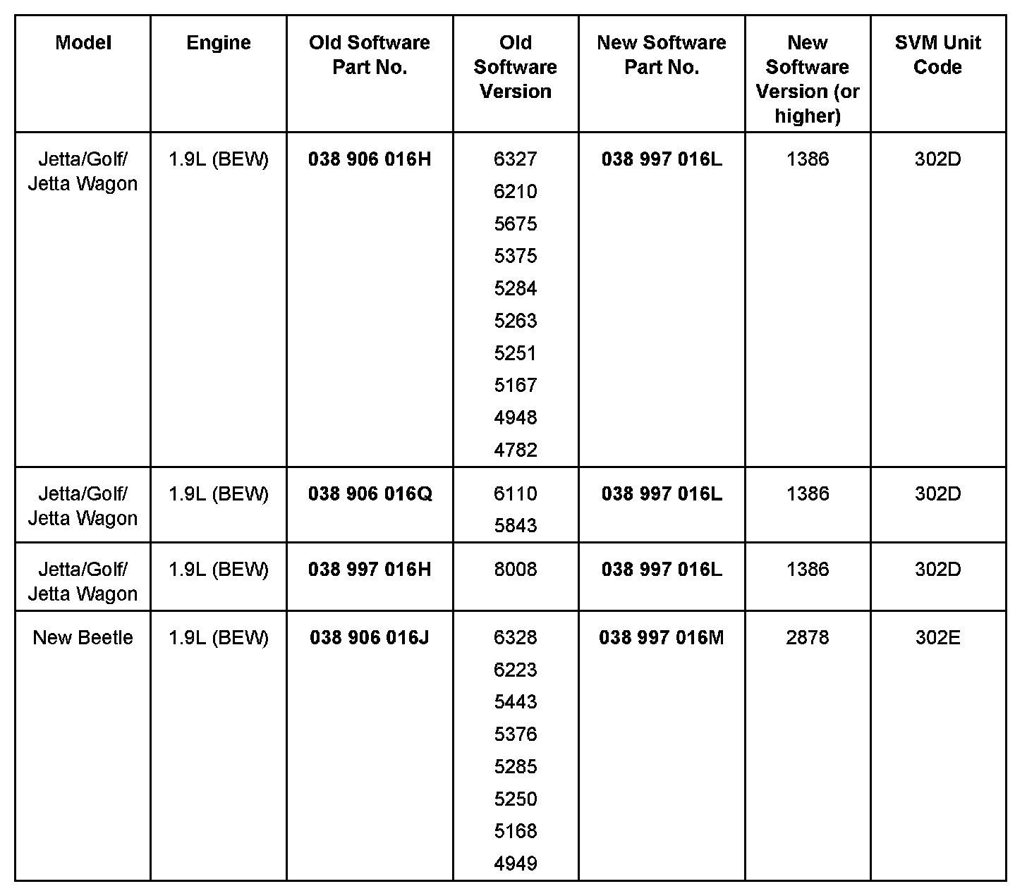 ^ Update the Engine Control Module using the SVM Unit code as listed in the table shown.