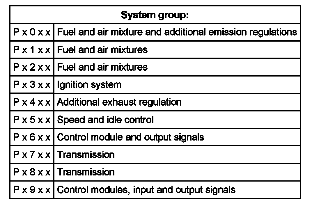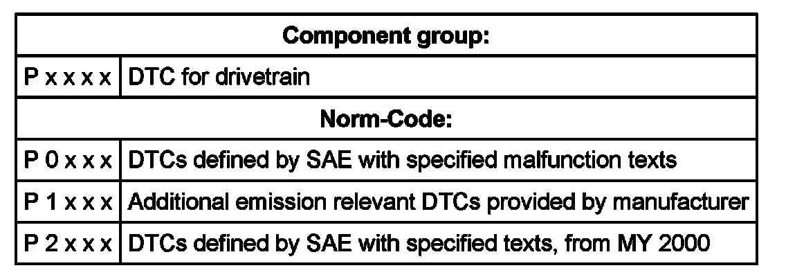 The DTC always consists of a 5-digit alpha-numeric value with the following meaning: