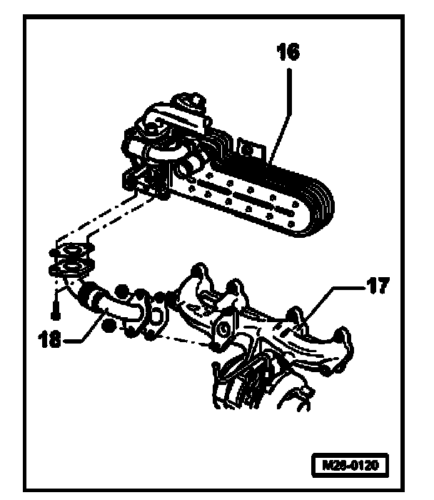 - Install connecting pipe - 18 - from EGR cooler - 16 - to exhaust manifold - 17 -.