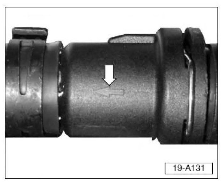 The hose is directional (white arrow in illustration 19-A131) and should