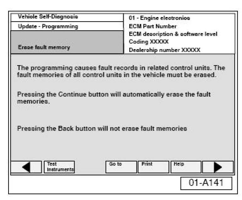 Failure to erase ALL fault memories may cause "Update - Programming" (flashing) procedure to fail!re to fail!