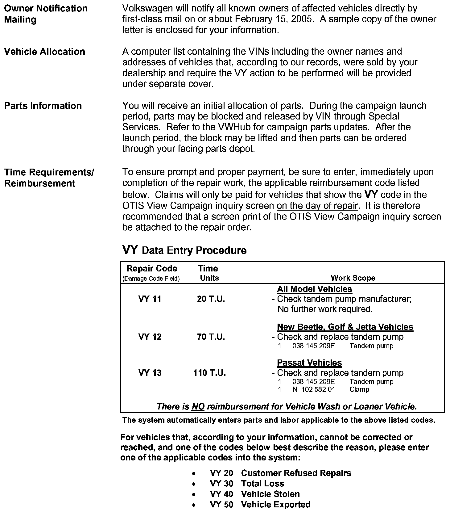 VY-CANSubject: 2004-2005 Model Year Volkswagen Jetta and Jetta Wagon, Golf and New Beetle with 1.9L TDI-PD (Pumpe-D�se) Engine 2004-2005 Model Year Volkswagen Passat with 2.0L TDI-PD (Pumpe-D�se) Engine Check/Install Diesel Pump Kit
