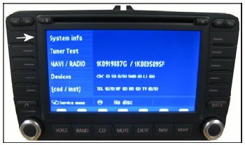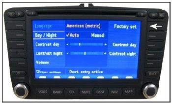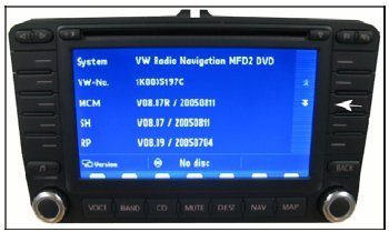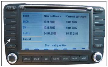 NOTE: Presets of the radio and the language setting will be lost (destinations, adjustments) The process takes about 45 minutes. Do not start the engine to avoid low voltages.