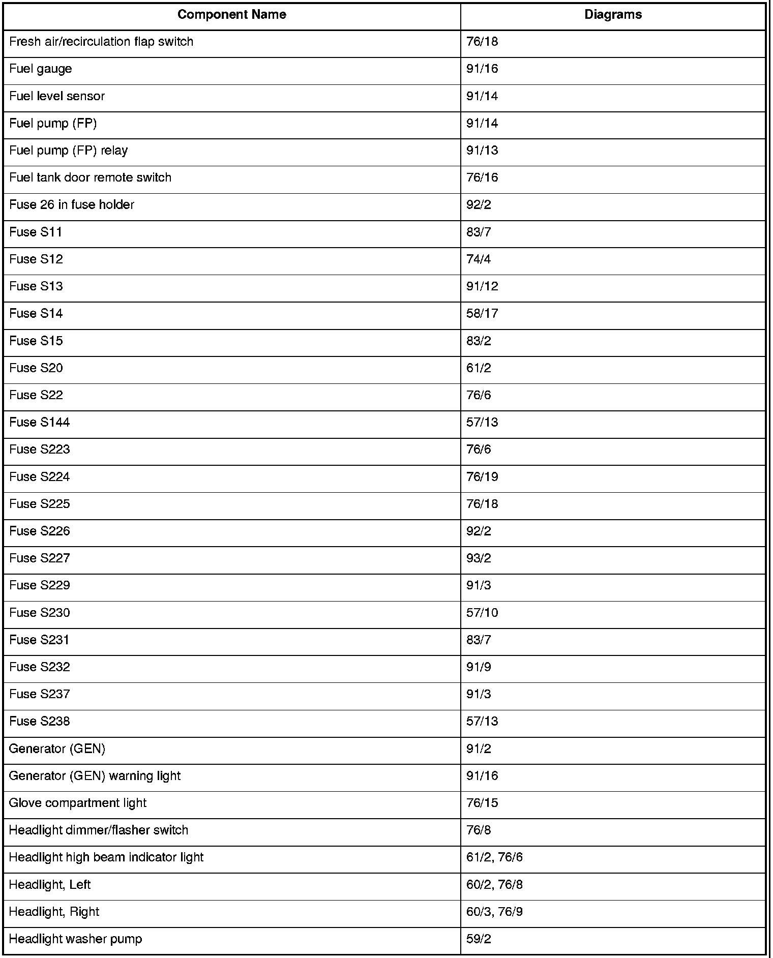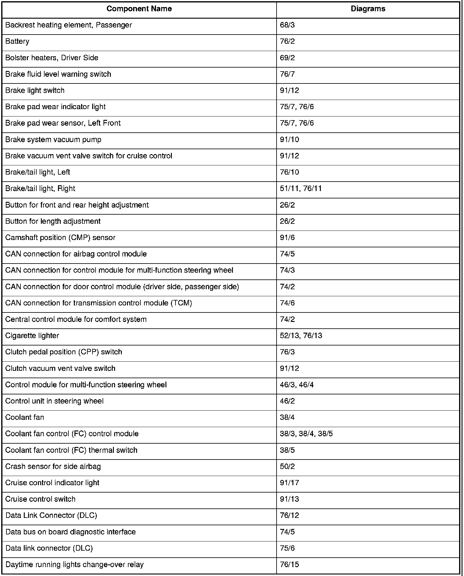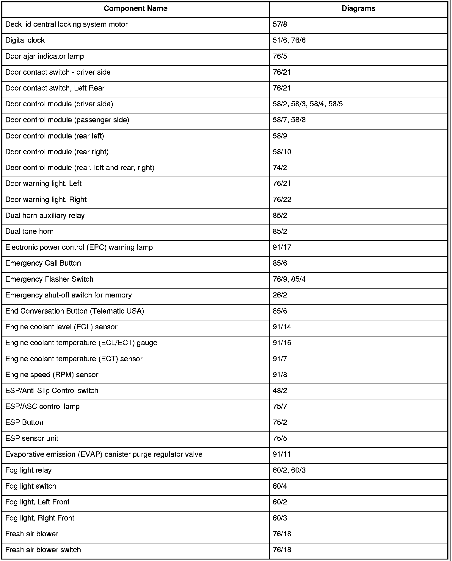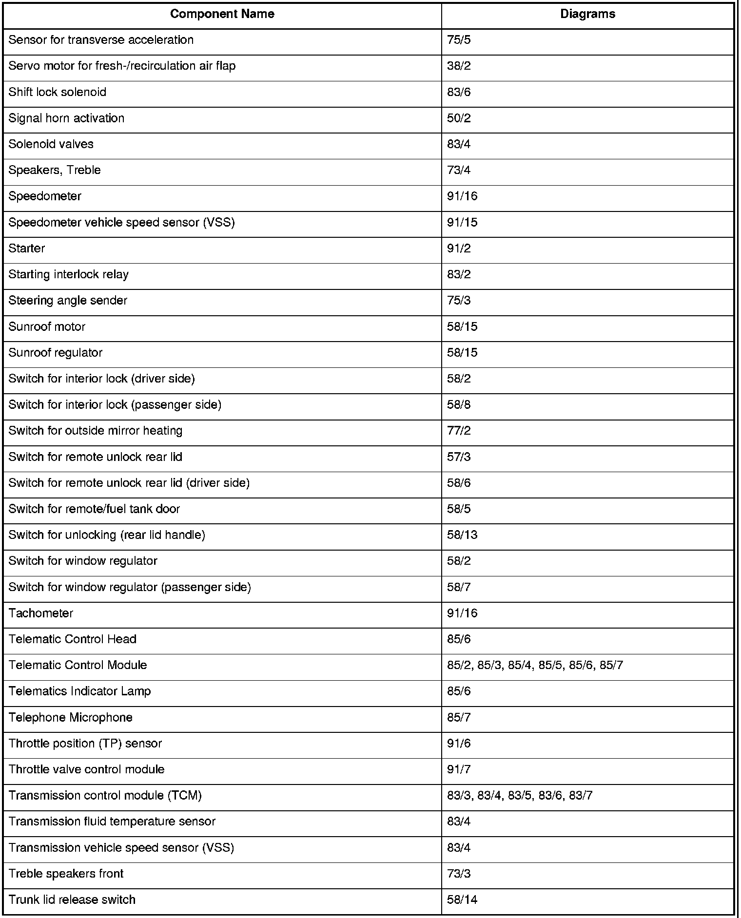 Master Diagram Index