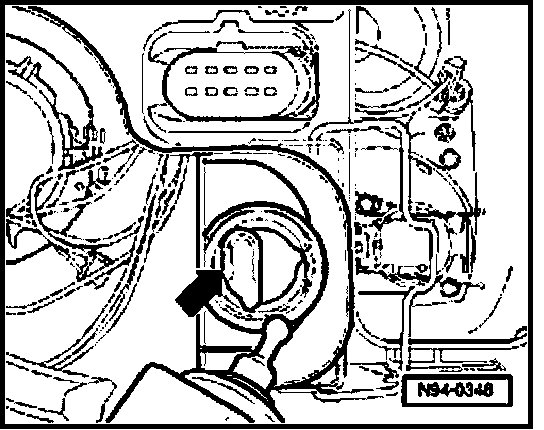 - Release spring clip -arrow- and remove sealing cover.