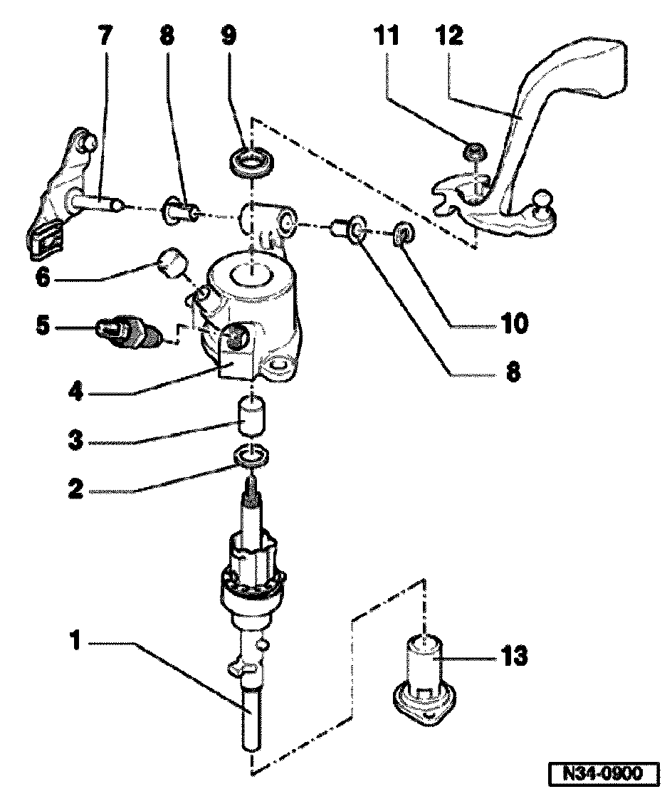 ^ With an additional bolt which allows the selector shaft to be guided into the 4th gear gate when changing down from 5th to 4th gear, introduced as of transmission build date 04 09 0 go to Fig. 4