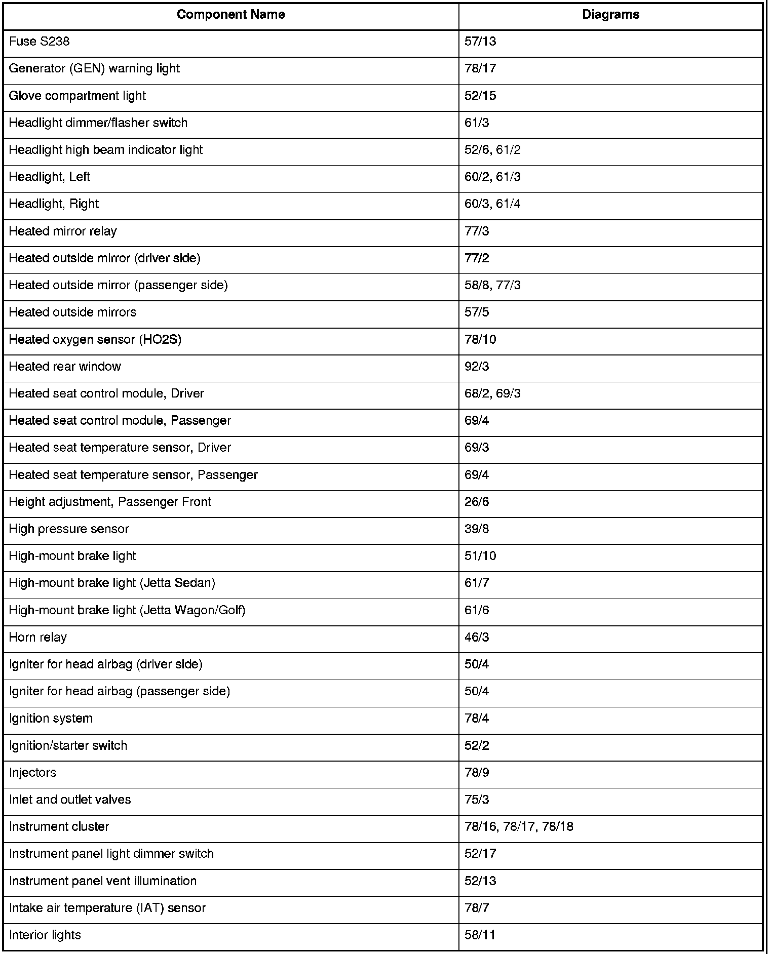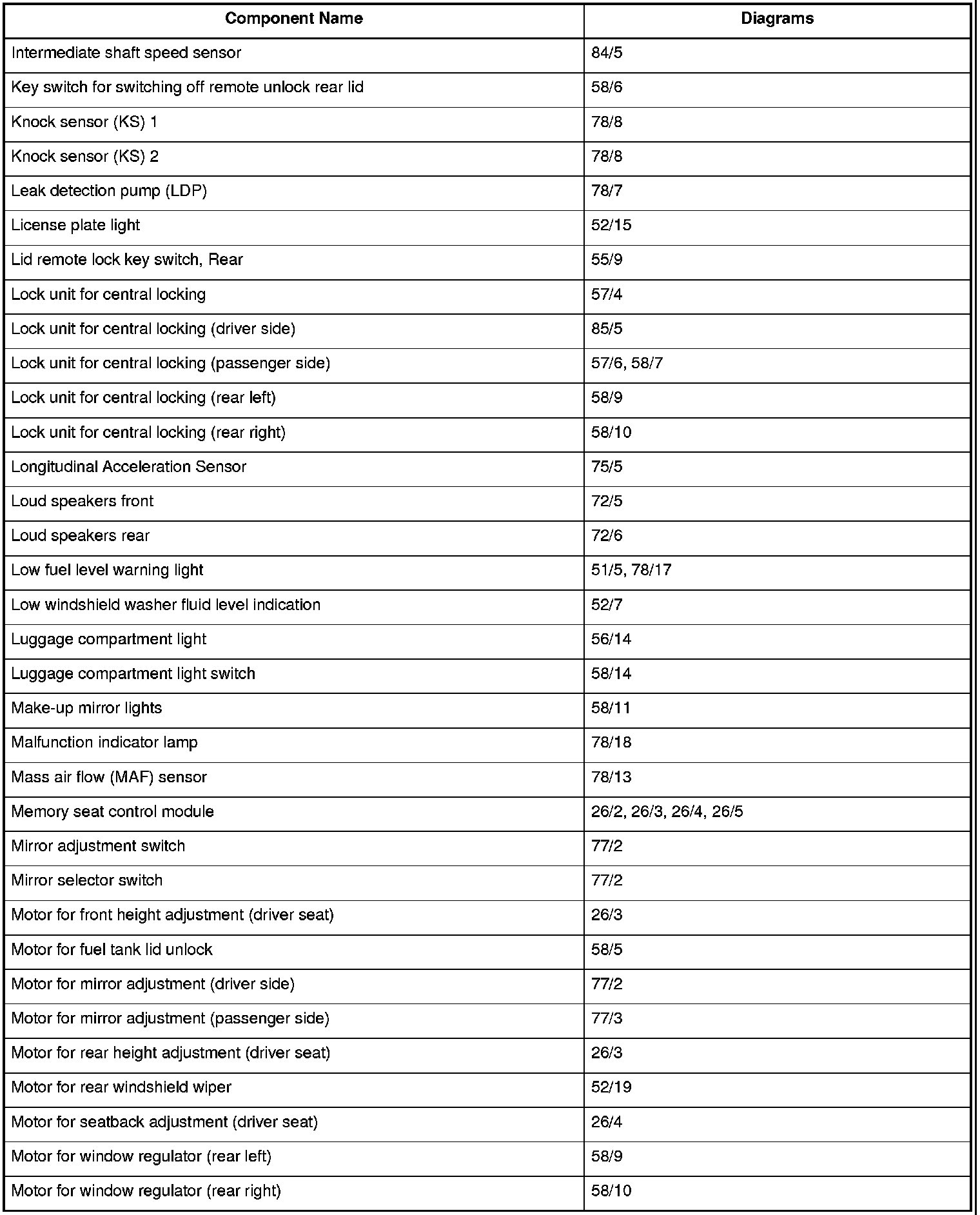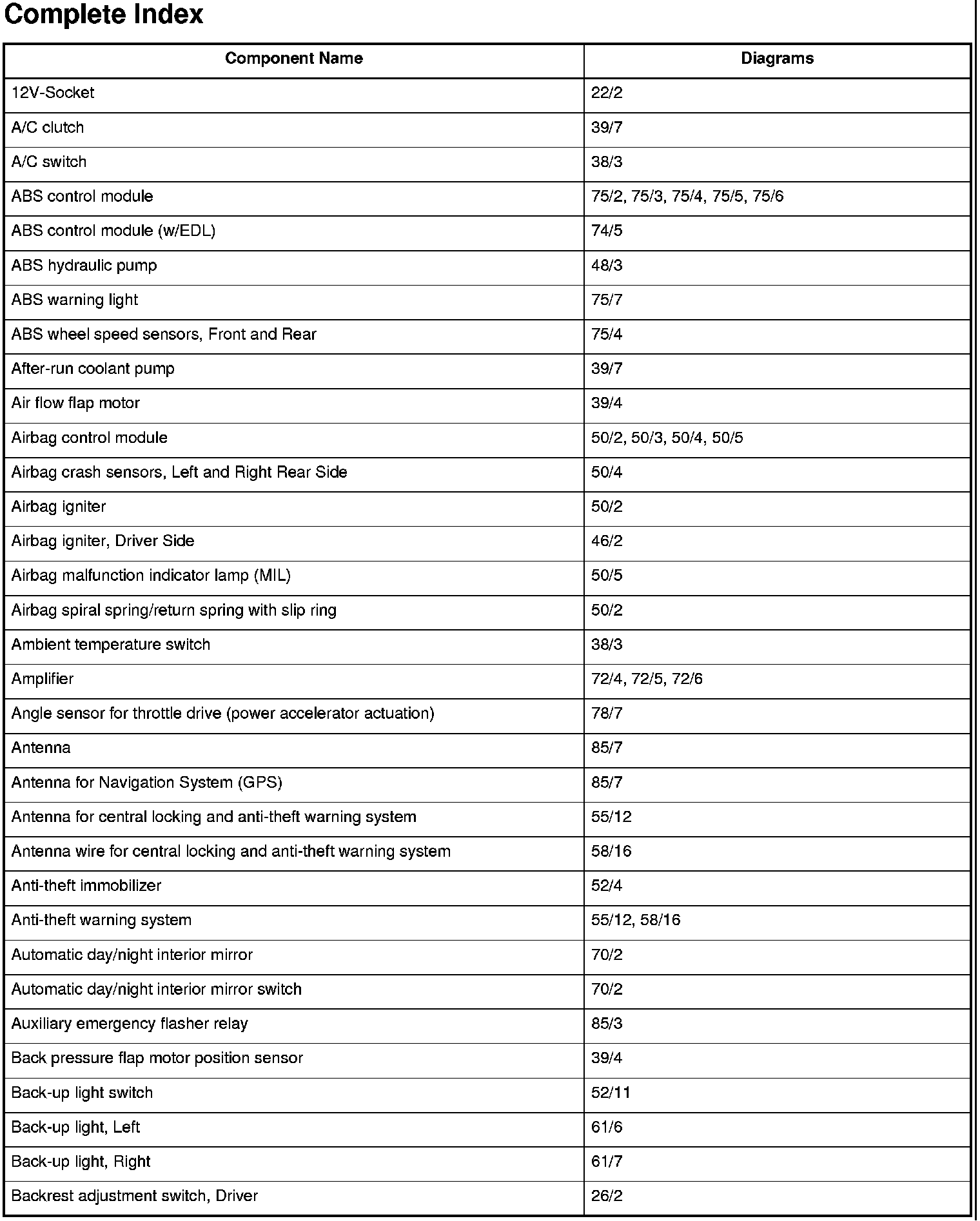 Master Diagram Index