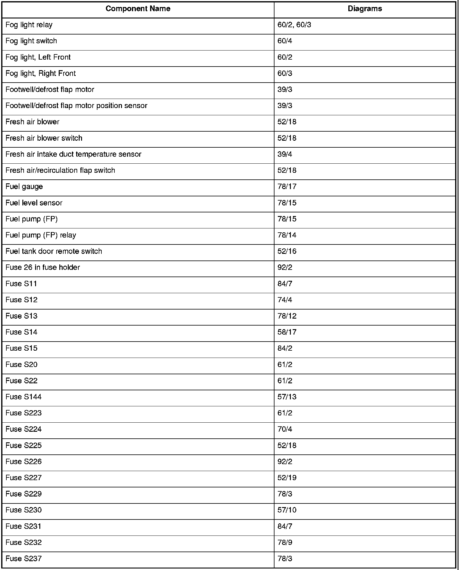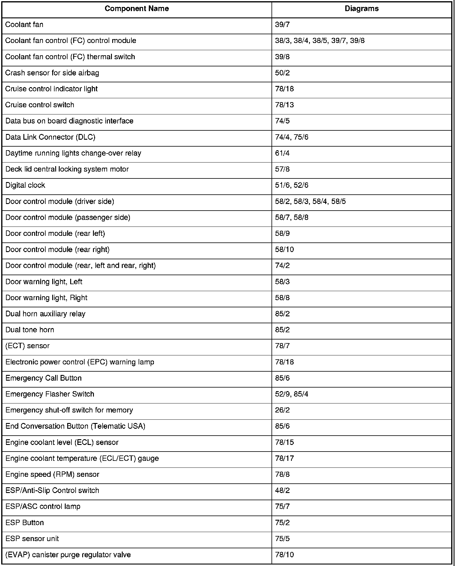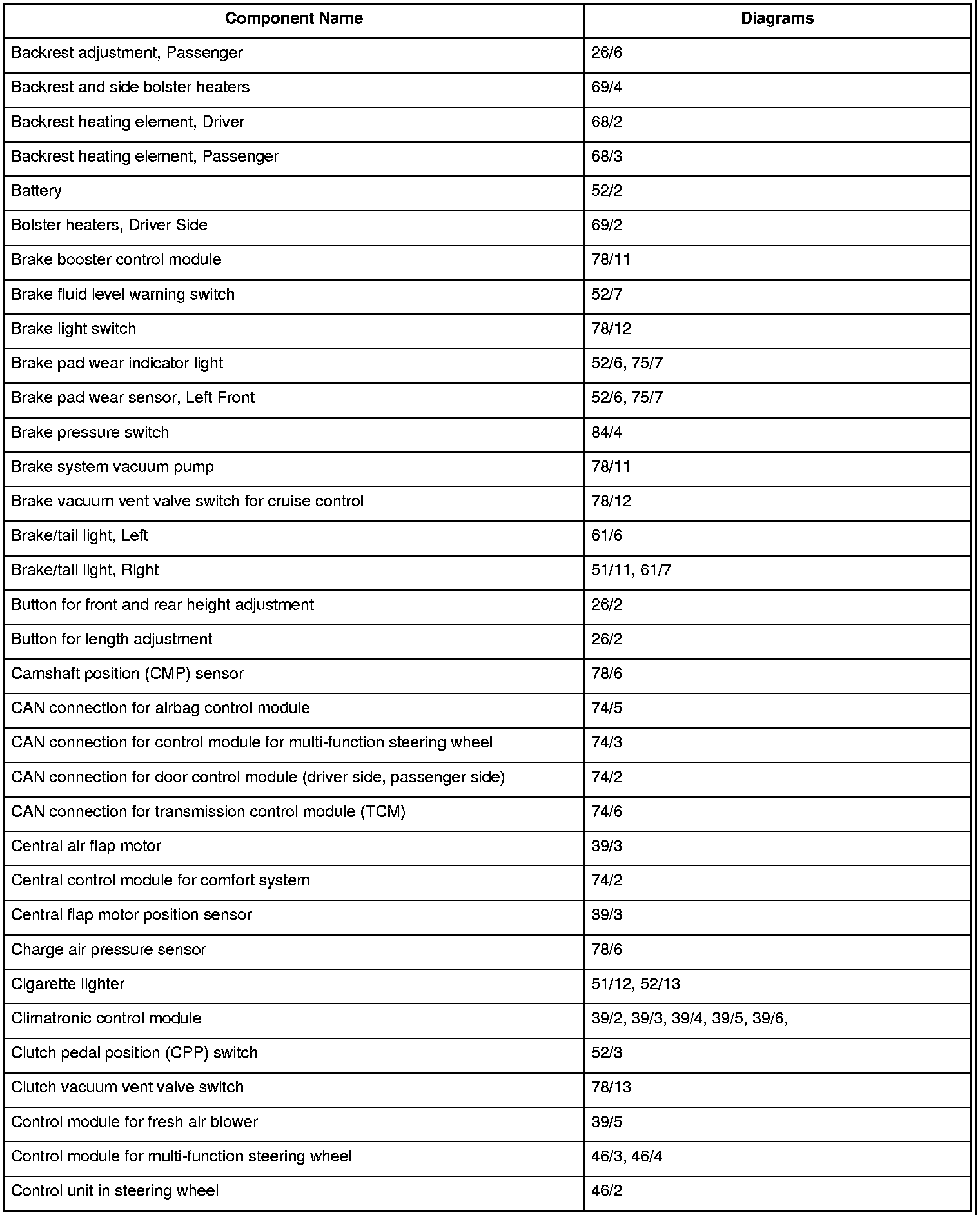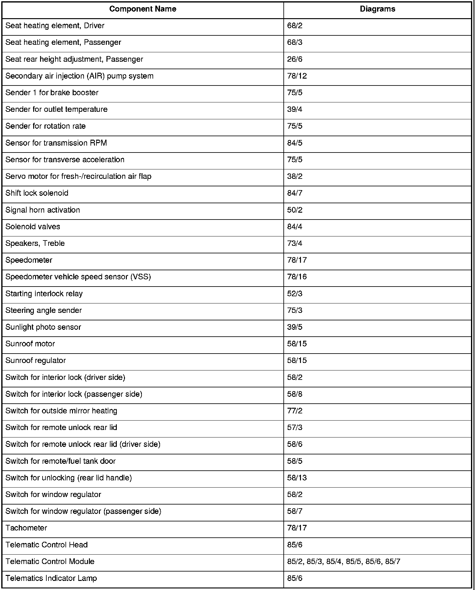 Master Diagram Index