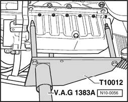 - Gently lift engine and transmission using engine/transmission jack V.A.G 1383 A.