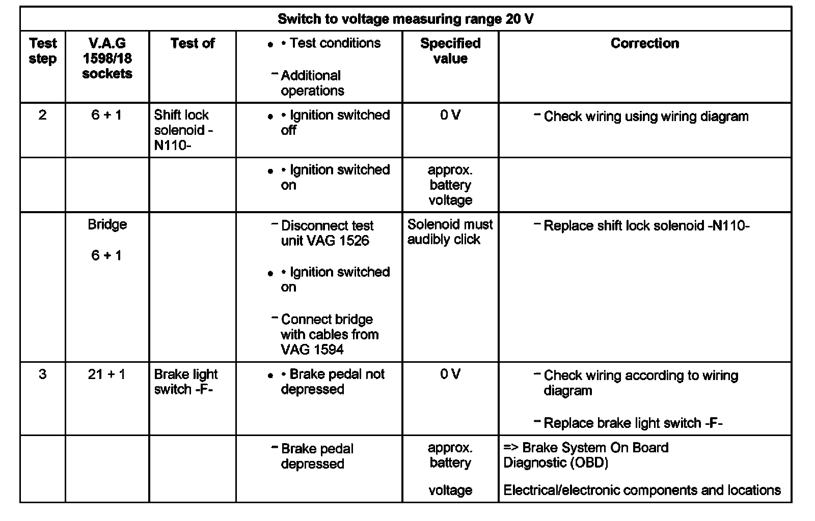 Test Table, Test Steps 2-3: