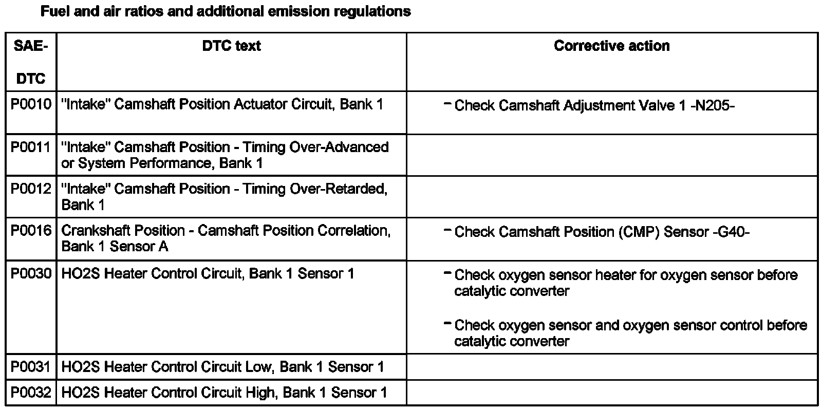 DTC P0010 - P0032:
